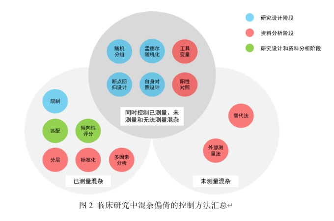 混杂偏倚的控制应贯穿临床研究设计和资料分析的全过程,针对已测量、未测量和无法测量混杂,存在不同的混杂控制方法。作者从混杂偏倚的定义和识别入手,按照混杂类型和研究阶段,梳理归纳了临床研究中混杂偏倚控制的原则和方法,包含不同混杂控制方法的适用条件和优缺点,以及残余混杂的测量和混杂偏倚控制的综合策略。