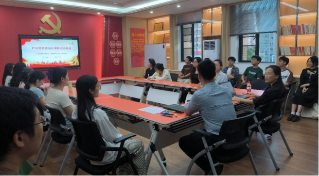 党员活动室为研究生第五党支部师生讲授题为“严守党的政治纪律和政治规矩”的党纪学习教育专题党课,党课由研究生第五党支部书记张伟主持。