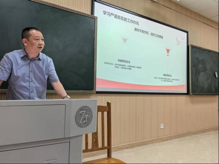 党委副书记王超于B113教室为职工第三党支部和研究生第三党支部师生党员带来了一场主题为“深入贯彻中央八项规定精神学习教育 普通党员师生该从中学习什么”的专题党课,为党员师生筑牢思想防线、明确行动方向。