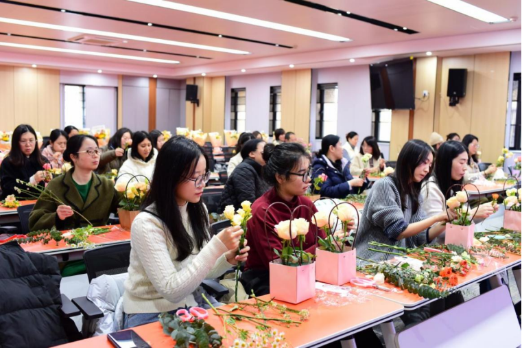 妇女节系列活动的特色单元,本次花艺活动既彰显对知识女性的人文关怀,更通过美育浸润激发创新活力。正如绽放的插花作品所寓意的,新时代的女教师们正以柔韧坚定的姿态,在立德树人的沃土上持续生长,为高等教育高质量发展贡献智慧芬芳。
