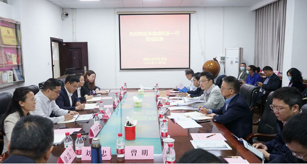 2022年11月9日上午,校长李建成、校党委副书记蒋建湘、副校长陈立章、副校长黎志宏一行到91AV 调研,学校办公室相关负责人,91AV 领导班子成员、91AV 各系主任、办公室主任及教师代表参加。座谈会由91AV 党委书记雷先阳主持。