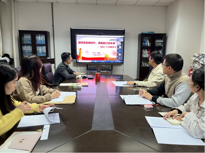 任院长向党员同志们解读党的二十大主题,以党的二十大报告要点为主线,分别从五个方面内容解读党的二十大精神。关于新时代十年伟大变革,要求我们要从学习中进一步坚持四个自信,坚定政治站位,汲取奋进力量;关于马克思主义中国化时代化新境界,阐述了“两个结合”要求,精辟概括了习近平新时代中国特色社会主义思想贯穿的世界观和方法论,号召全体党员继续推进实践基础上的理论创新、不断开辟马克思主义中国化时代化新境界;关于以中国式现代化全面推进中华民族伟大复兴,要求全体党员把思想和行动统一到党的二十大精神上来,心往一处想、劲往一处使,在中国式现代化道路上不断谱写全面建设社会主义现代化国家新篇章;关于实施科教兴国战略与重大部署,指出教育、科技、人才是全面建设社会主义现代化国家的基础性、战略性支撑,号召全体党员要坚持尊重劳动、尊重知识、尊重人才、尊重创造;关于深入推进新时代党的建设,指出我们身处这样一个伟大的时代,每位党员都要时刻提醒自己严以律己、重任在肩,践行“忠诚、干净、担当” 要求。