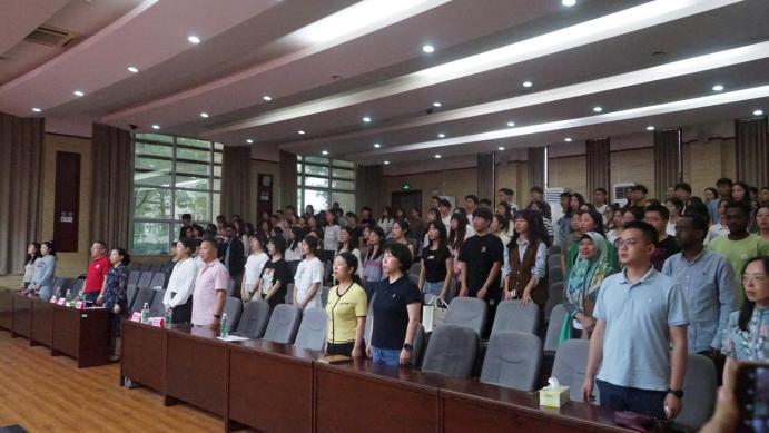 领导、老师,并宣布典礼正式开始。在庄严的国歌声中,开学典礼正式拉开了帷幕。在开幕词中,他对大家成为湘雅2023级研究生新生表示衷心的祝福和欢迎,随后他强调大家在新征程要锻炼自身能力,内化于心外化于形,并始终常怀先天下之忧而忧,后天下之乐而乐的家国情怀。