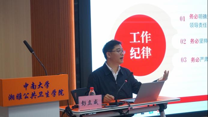 彭立威书记以《做一个严守纪律的中南人》为题,围绕“保持清醒头脑,自觉遵守廉政红绿灯”“明纪知纪守纪,从紧从严从实恪守纪律”“强化责任担当,营造风清气正发展环境” 等方面,系统阐释了如何做一个严守纪律的中南人。他结合91AV