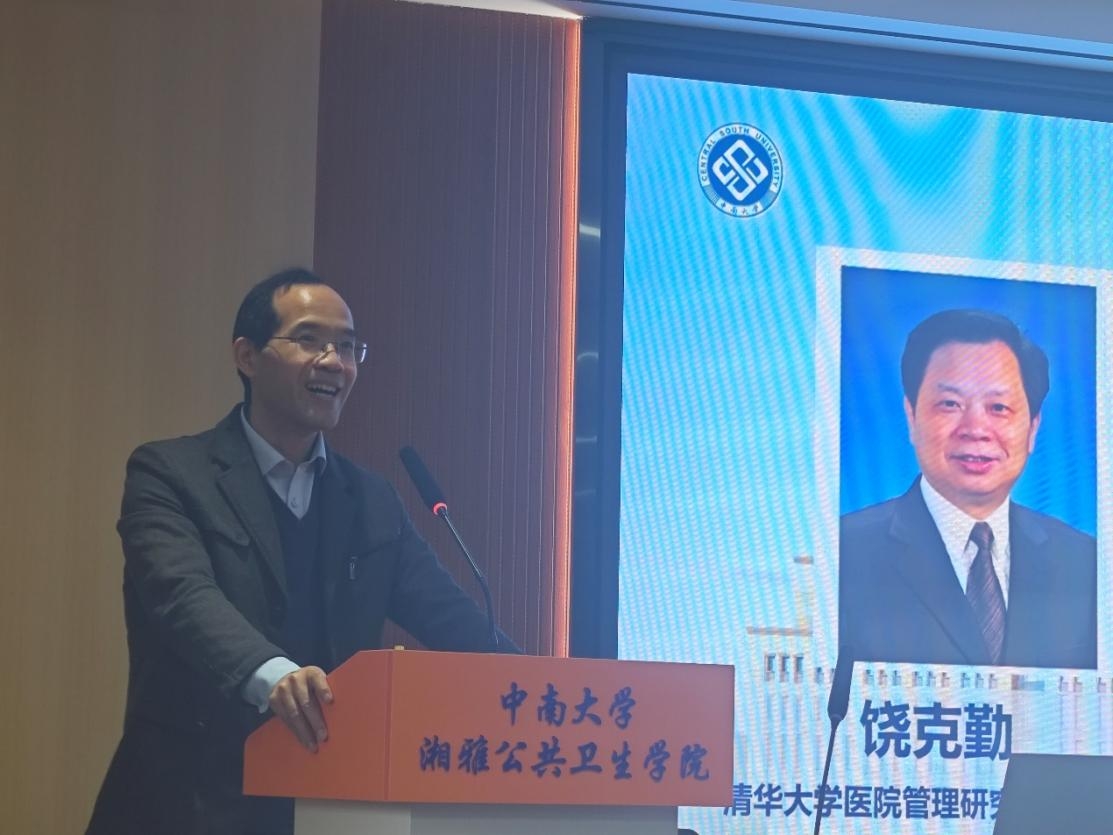 对饶克勤教授的到来表示热烈欢迎。饶克勤教授作为公共卫生领域的权威学者,一直致力于生物统计流行病学、卫生经济学、卫生信息学、公共卫生管理和卫生政策方面的研究。