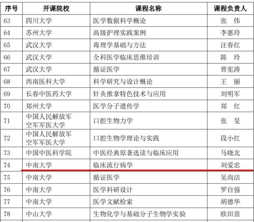 刘爱忠教授负责的《临床流行病学》慕课获评首批全国医学专业学位研究生在线示范课程。