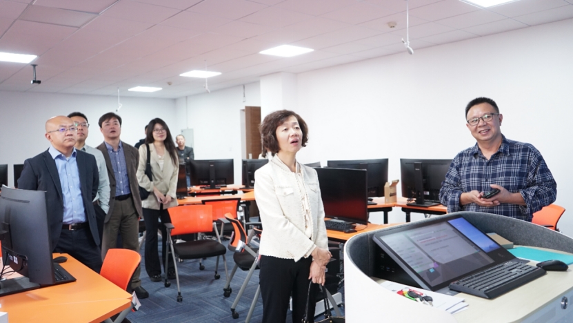 的虚拟仿真实验室。实验室运用先进的信息技术手段,为学生打造了一个逼真的突发公共卫生事件场景,显著提高了教学效果。李青对实验室的创新性和实用性给予了高度评价,并与郭桂平老师进行交流,详细了解了实验室在课程设计和学生实践能力培养方面的具体做法。