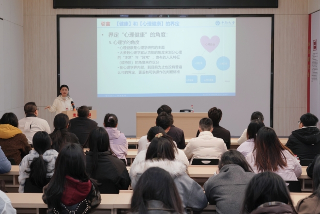 随后,罗丹围绕“青少年自我适应”主题作专题讲座。她结合真实案例,系统讲解了青少年成长发展阶段特征、常见心理问题的成因与表现、科学心理调适路径等内容,深入剖析当前心理健康教育中的重点难点,并提出具有实践意义的应对策略。罗丹还分享了缓解心理压力的具体方法,呼吁家庭、学校、医疗机构与社会力量协同发力,共同营造有利于青少年身心健康发展的支持环境。