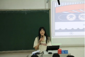 团委各部门宣讲结束后,由学生会主席张睿兮主持学生会各部门的招新宣讲。简洁的开场后,学生会办公室、学术部、青年志愿者部、生活权益部、文艺部、体育部各部门的负责人依次到台前向新生们宣传各自的部门,当他们用有趣的视频、图片展示过去一年中部门举办的各类活动时,台下的同学们笑声不断不断。