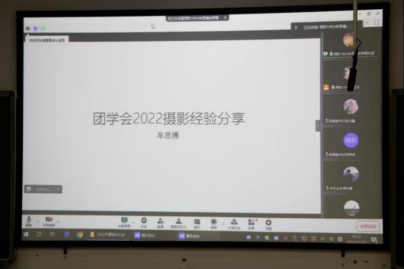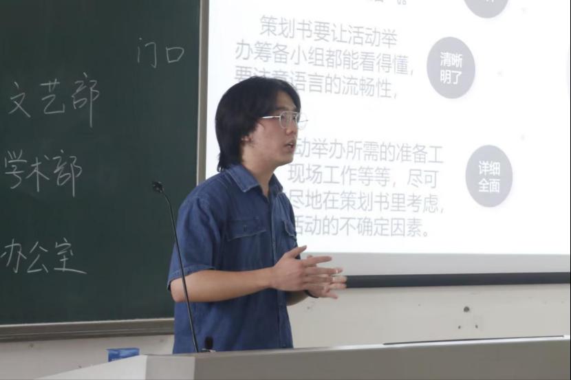 团委及学生会2022级迎新活动策划书》为例讲授策划书的撰写;学生会办公室副主任胡拉莱讲授了处理经费申请等事务的方法;学生会学术部部长雷若妍讲授新闻稿的撰写技巧,与大家分享如何写好有设计感的文案;团委宣传部部长林雯潇讲授了美工和排版中的各种细节,总结了干事工作中的不足;牟思博同学线上讲授了摄影技巧、赏析了一些摄影作品并且分享了自己的摄影佳作。