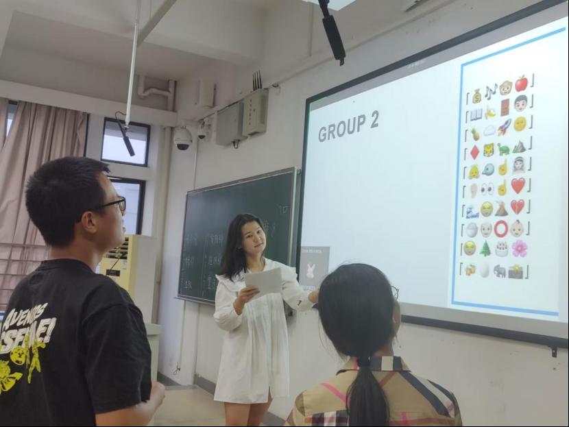 (图为学术部部长雷若妍同学讲解)