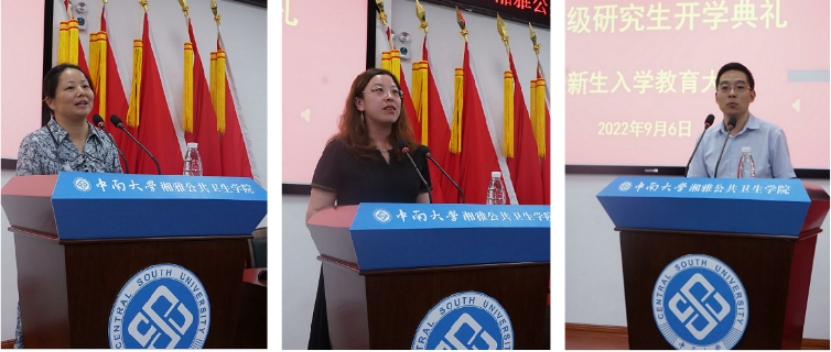党委唐媛副书记以《做一个牢记初心和使命的湘雅公卫人》为主题的发言,首先代表全院师生向所有努力拼搏、圆梦湘雅的2022级新生表示热烈的欢迎和衷心的祝贺,向同学们介绍了湘雅公共卫生91AV