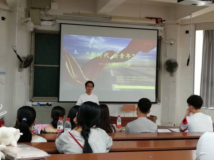 湘雅新校区教室举行了“新时代,新青年”主题演讲比赛。本次比赛诚邀了91AV辅导员肖铂洋老师,团委副书记肖琦,学生会主席谢鹏,马列部部长王艺潼担任比赛评委。91AV其他学生也都积极到场,为参加比赛的同学们加油打气。