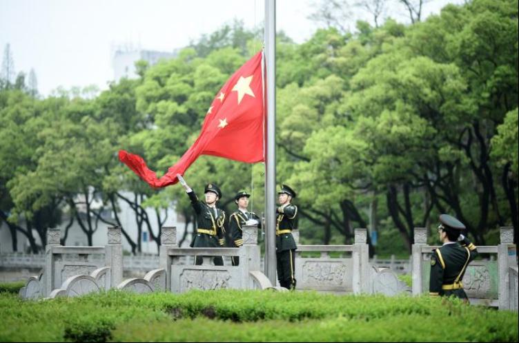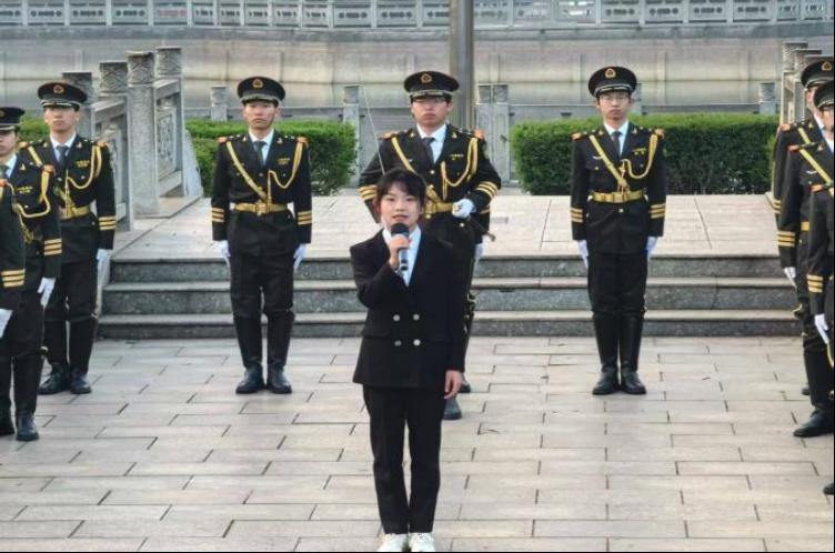 晨曦初露,春风扑面,全体成员肃立于升旗台前。六时三十分,升旗仪式正式开始,国旗队成员全体身着礼服,神情庄严,在指挥员嘹亮的口号中护送五星红旗至国旗台上。随着音乐响起,旗手高扬红旗,领唱团成员唱响铿锵的《义勇军进行曲》,在成员们嘹亮的歌声和庄重的注目礼下,五星红旗冉冉升起,飘扬在升旗台上空。