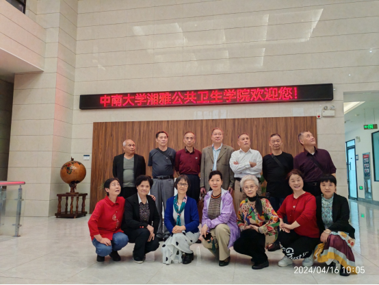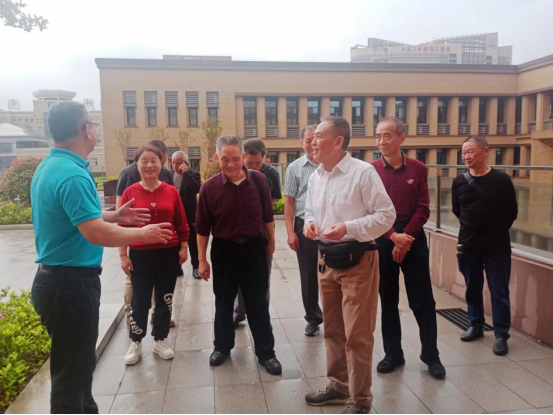 的发展建言献策,并祝愿老学长们身体健康。王超副书记、尹逊强副主任带领校友参观了湘雅公卫新楼学术报告厅、实验室大仪平台、楼顶露台休闲区等。