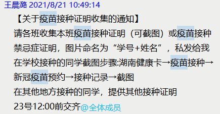 关于疫苗接种的通知,保证全班同学都可以知道学校疫苗接种的现状,及时参与到疫苗接种工作中。