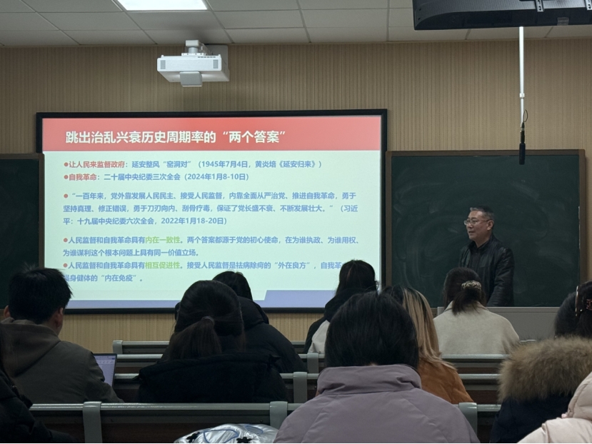 党课重点剖析了集中性学习教育作为推进党的自我革命“有效途径”和“重要抓手”的战略意义。尹逊强引用“跳出治乱兴衰历史周期率”的“两个答案”——“让人民来监督政府”和“自我革命”,深刻阐释了新时代党的创新理论。