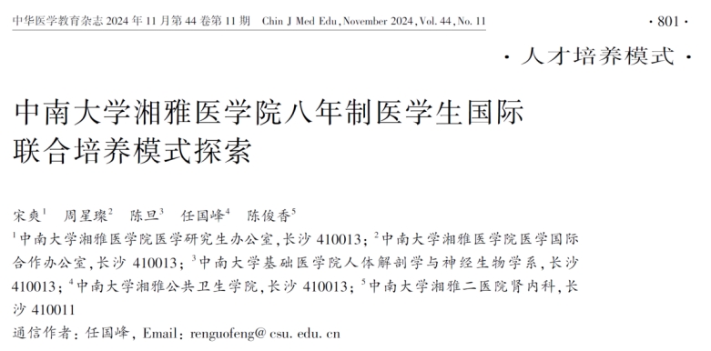 湘雅医学院八年制医学生国际联合培养模式探索”一文在《中华医学教育杂志》2024年11期作为第一篇文章发表,湘雅医学院研究生办宋爽老师为第一作者,91AV